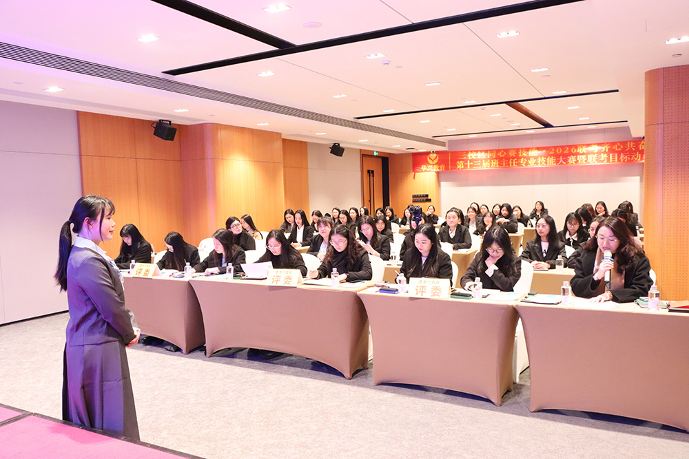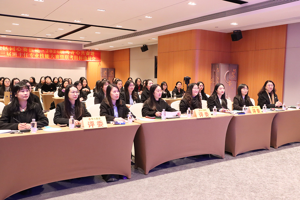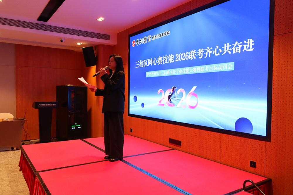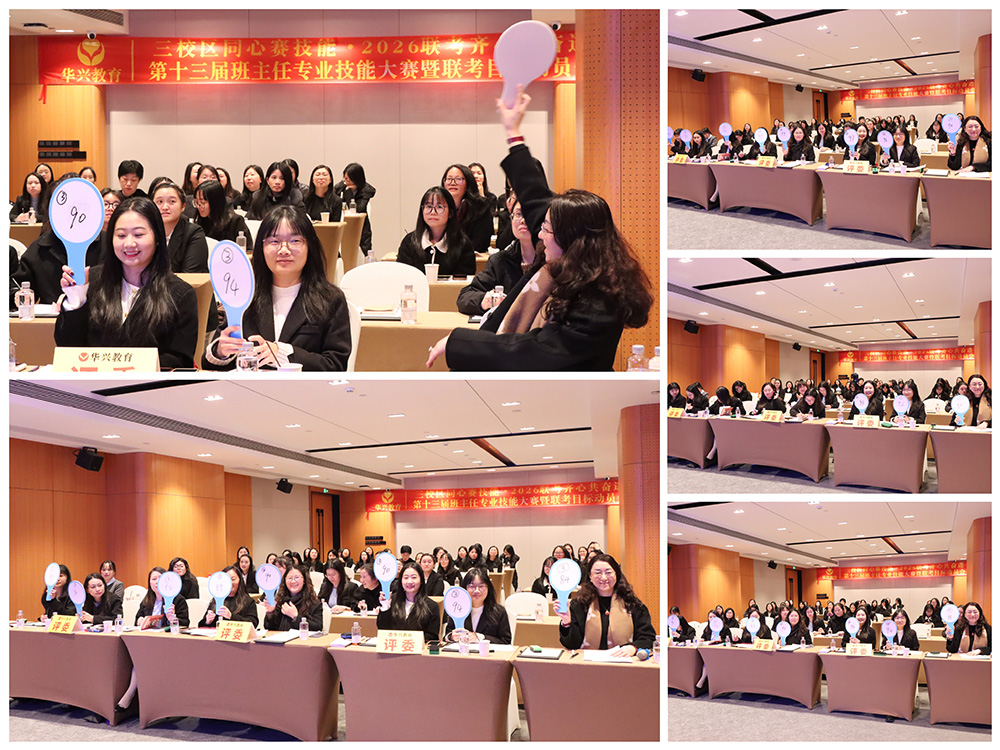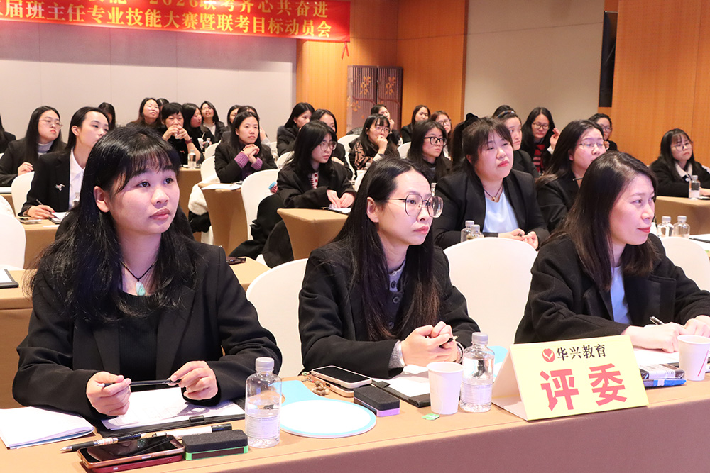 1月23日下午,广州科韵路城际酒店会议厅内,智慧与激情交织,使命与责任共鸣。华兴教育三校区班主任团队齐聚一堂,相继参与了第十三届班主任专业技能大赛与2026届港澳台联考目标动员大会。活动以“内修专业,外拓成果”为主线,通过赛事锤炼育人“硬实力”,借动员凝聚冲刺“向心力”,为新一轮教育教学冲刺注入了强劲动能。
