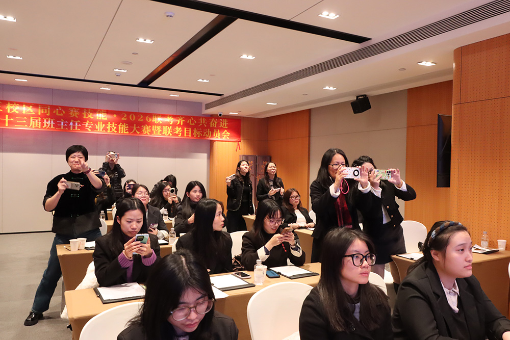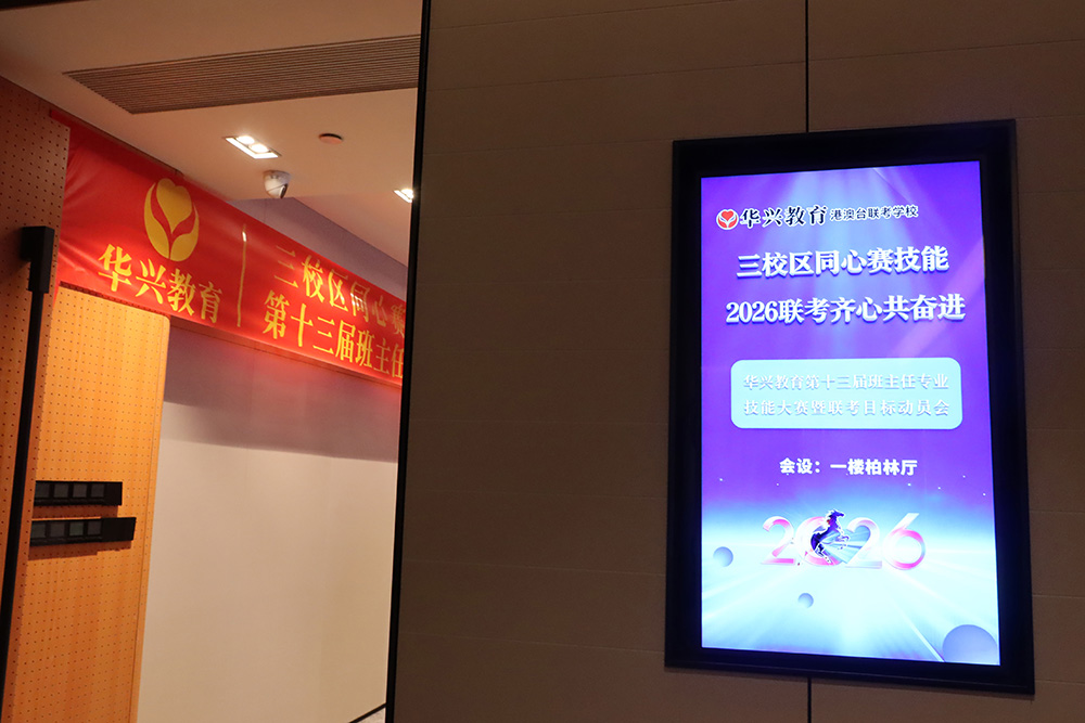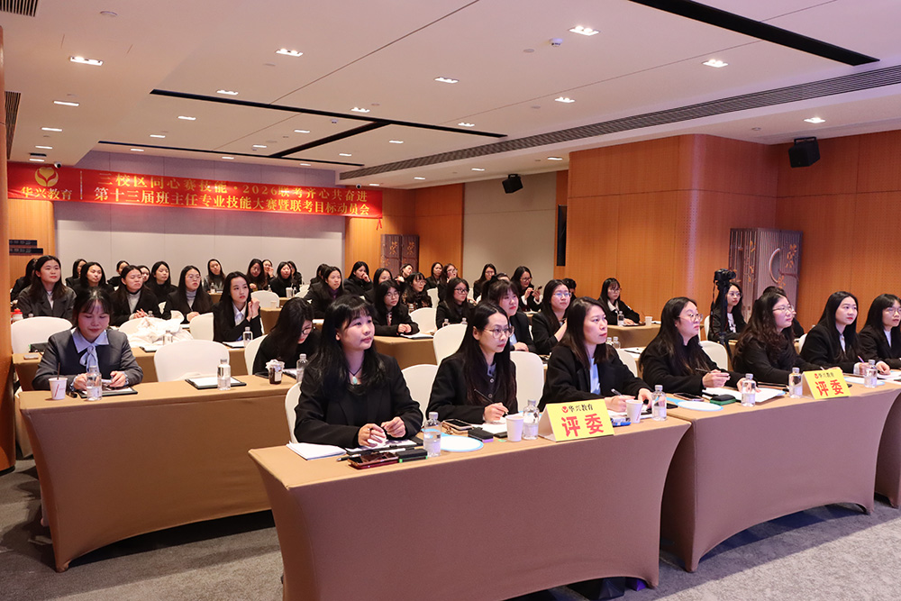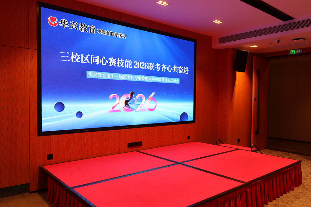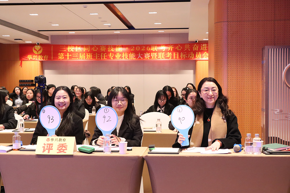 1月23日下午,广州科韵路城际酒店会议厅内,智慧与激情交织,使命与责任共鸣。华兴教育三校区班主任团队齐聚一堂,相继参与了第十三届班主任专业技能大赛与2026届港澳台联考目标动员大会。活动以“内修专业,外拓成果”为主线,通过赛事锤炼育人“硬实力”,借动员凝聚冲刺“向心力”,为新一轮教育教学冲刺注入了强劲动能。